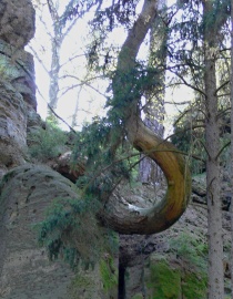 v zatáčkových skalách - strom se v útlém věku zjevně nemohl