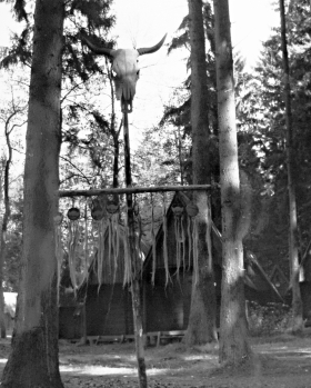 prostředí se vylepšilo tradičním totemem s lebkou, zdobeným